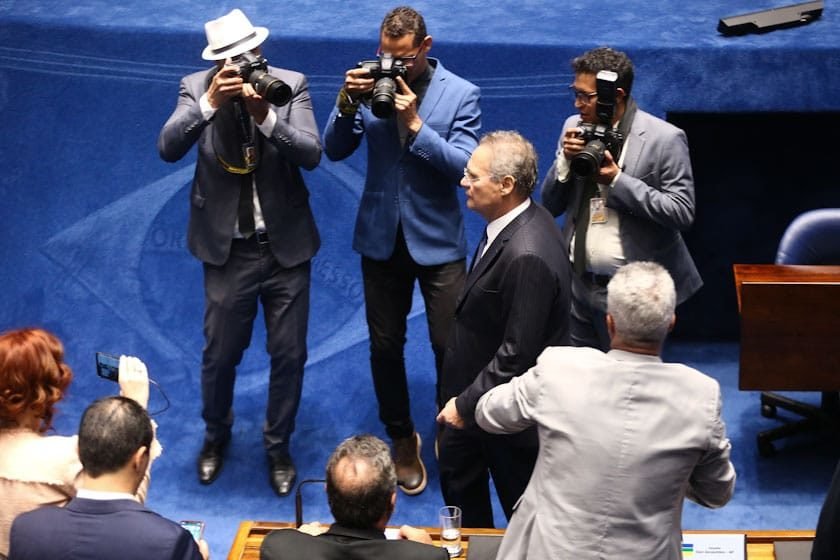 Senadores passaram a revelar que não votariam em Renan Calheiros - 9. Em meio à tanta confusão e com os nervos dos parlamentares à flor da pele, o presidente da sessão, senador José Maranhão (MDB-PB), cometeu uma gafe inesquecível. Sem perceber que os microfones da mesa permaneciam ligados, o decano da legislatura — no alto dos seus 83 anos — deixou “vazar” que “precisava dar uma mijada”. Na mesma hora, todos que acompanhavam a sessão caíram na gargalhada, mas o senador fez cara de paisagem e seguiu ao toalete para aliviar a pressão. Seja ela qual fosse;